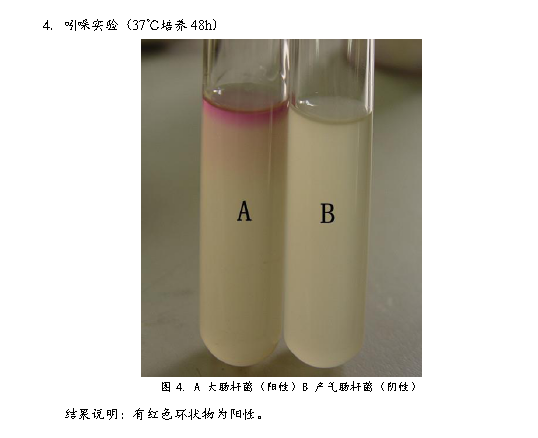 3、 將產(chǎn)氣腸桿菌接種到生理生化檢測培養(yǎng)基中,37℃培養(yǎng)48h。檢測菌種生理生化特性。