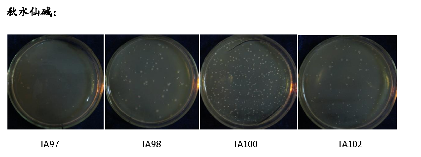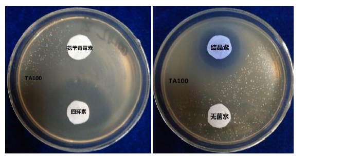 TA100:組氨酸缺陷,結晶紫敏感,紫外線敏感,氨芐青霉素不敏感,四環素敏感;