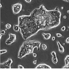 如果細胞密度達80%-90%,即可進行傳代培養(yǎng)。1. 棄去培養(yǎng)上清,用不含鈣、鎂離子的PBS潤洗細胞1-2次。2. 加2ml消化液(0.25%Trypsin-0.53mM EDTA)于培養(yǎng)瓶中,置于37℃培養(yǎng)箱中消化1-2分鐘,然后在顯微鏡下觀察細胞消化情況,若細胞大部分變圓并脫落,迅速拿回操作臺,輕敲幾下培養(yǎng)瓶后加少量培養(yǎng)基終止消化。3. 按6-8ml/瓶補加培養(yǎng)基,輕輕打勻后吸出,在1000RPM條件下離心4分鐘,棄去上清液,補加1-2mL培養(yǎng)液后吹勻。4. 將細胞懸液按1:2到1:5的比例分到新的含8ml培養(yǎng)基的新皿中或者瓶中 |