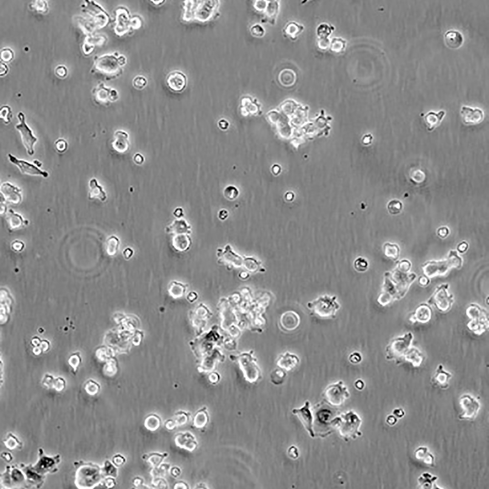 如果細胞密度達80%-90%,即可進行傳代培養。1. 棄去培養上清,用不含鈣、鎂離子的PBS潤洗細胞1-2次。2. 加2ml消化液(0.25%Trypsin-0.53mM EDTA)于培養瓶中,置于37℃培養箱中消化1-2分鐘,然后在顯微鏡下觀察細胞消化情況,若細胞大部分變圓并脫落,迅速拿回操作臺,輕敲幾下培養瓶后加少量培養基終止消化。3. 按6-8ml/瓶補加培養基,輕輕打勻后吸出,在1000RPM條件下離心4分鐘,棄去上清液,補加1-2mL培養液后吹勻。4. 將細胞懸液按1:2到1:5的比例分到新的含8ml培養基的新皿中或者瓶中。 |