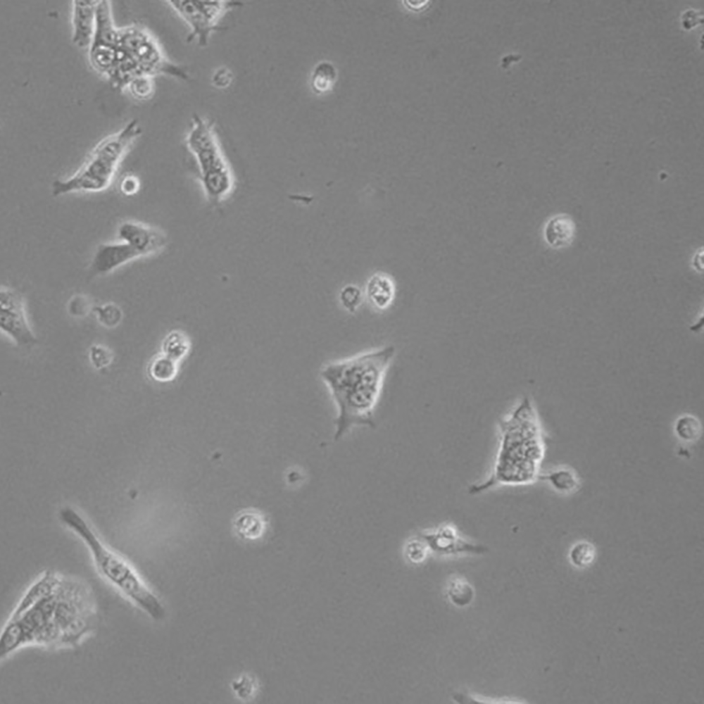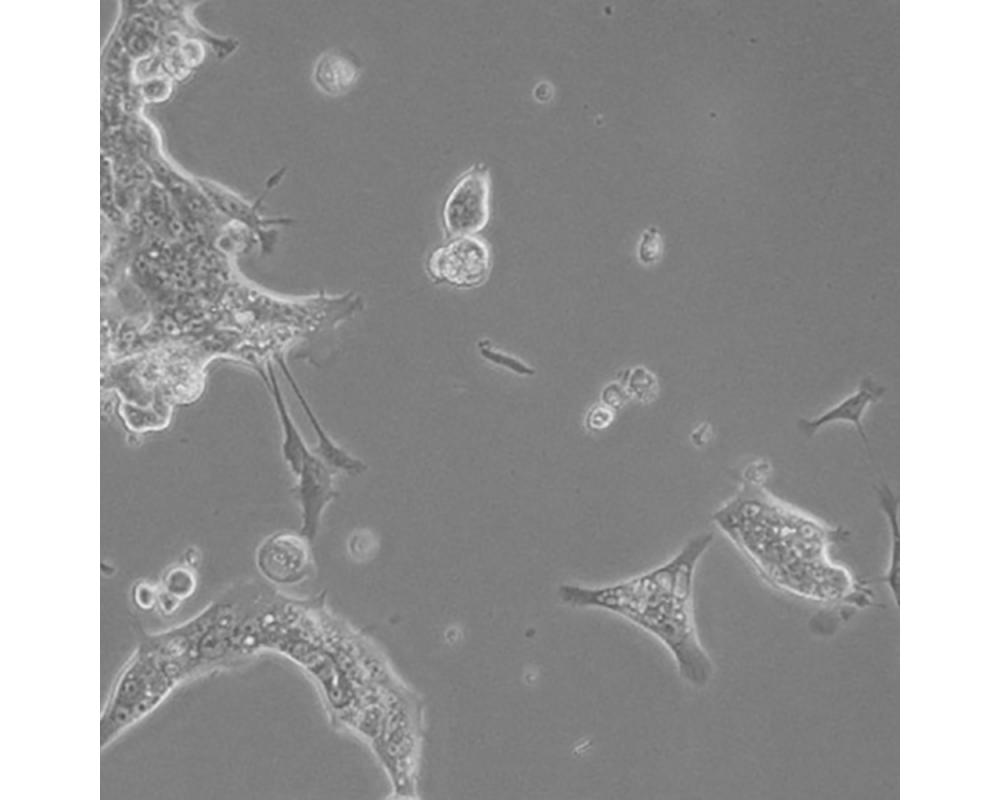 如果細胞密度達80%-90%,即可進行傳代培養。1. 棄去培養上清,用不含鈣、鎂離子的PBS潤洗細胞1-2次。2. 加2ml消化液(0.25%Trypsin-0.53mM EDTA)于培養瓶中,置于37℃培養箱中消化1-2分鐘,然后在顯微鏡下觀察細胞消化情況,若細胞大部分變圓并脫落,迅速拿回操作臺,輕敲幾下培養瓶后加少量培養基終止消化。3. 按6-8ml/瓶補加培養基,輕輕打勻后吸出,在1000RPM條件下離心4分鐘,棄去上清液,補加1-2mL培養液后吹勻。4. 將細胞懸液按1:2到1:5的比例分到新的含8ml培養基的新皿中或者瓶中。 |