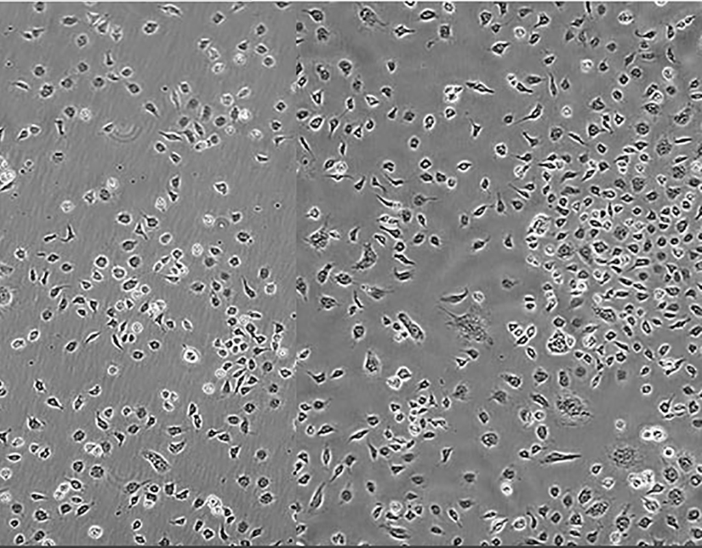 將含有1mL細胞懸液的凍存管在37℃水浴中迅速搖晃解凍,加入4mL培養基混合均勻。在1000RPM條件下離心4分鐘,棄去上清液,補加1-2mL培養基后吹勻。然后將所有細胞懸液加入培養瓶中培養過夜(或將細胞懸液加入10cm皿中,加入約8ml培養基,培養過夜)。第二天換液并檢查細胞密度。 |